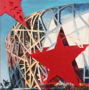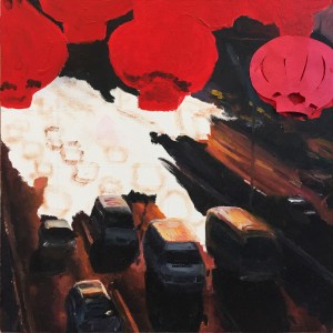 Tian’An Men, 6” x 6”, 6” x 6” Mixed Media: oil, acrylic, and paper cut out on panel